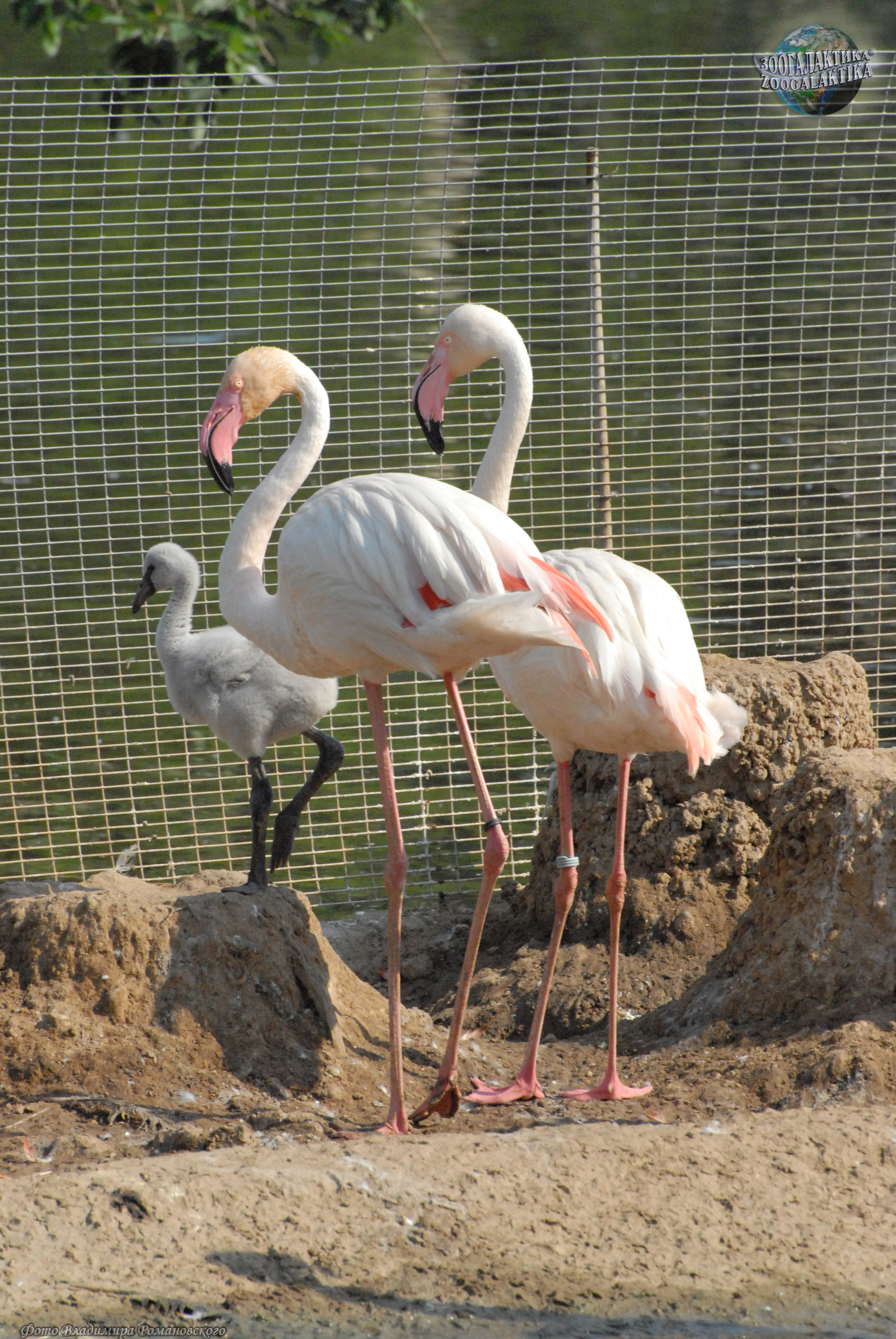 В Московском зоопарке весной, когда кончаются ночные и утренние заморозки, фламинго высаживаются из зимних помещений на сделанное для них болото.