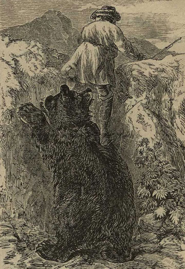 В Пиренеях жил охотник, который занимался тем, что ловил медведей; для этого он копал ямы, а потом закрывал их ветками и забрасывал ветки землей, чтобы лучше обмануть медведя. В один прекрасный день охотник, по неосторожности, сам попал в такую яму и никак не мог оттуда выбраться. Прошло несколько времени, и вдруг – представьте себе его ужас – в эту же яму упал медведь. Перепуганный охотник решил застрелить животное, но медведь наблюдал за ним и, заметив, что он начал целиться, так страшно зарычал, что охотник не решился спустить курок. Несколько минут оба, человек и зверь, выжидали, следя друг за другом; наконец, охотник, думая, что подозрения врага улеглись, опять прицелился. И опять-таки грозный вид и рычание медведя перепугали его до того, что он даже выронил из рук ружье. Прошло несколько часов. Медведю хотелось выйти на свободу не меньше, чем человеку; наконец, как бы придумав что-то, он приподнялся на задних лапах и уперся передними в стенку ямы, так что спина его образовала род лестницы. Это он проделал несколько раз и все время смотрел на охотника, как бы приглашая его воспользоваться таким способом освобождения.