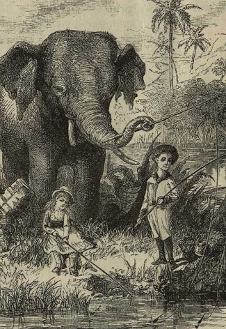 Старый Суп очень привязался к детям и заменял для них няньку; дети на целые часы уходили с ним гулять, и майор нередко говорил, что он гораздо больше полагается на своего слона, чем на няньку-индианку.