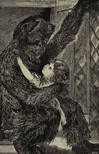 Что тут было делать? Отец, в отчаянии, уже готов был броситься сам в огонь, на верную смерть, как вдруг окно детской отворилось, и в него просунулась лохматая рука, а затем и самое тело орангутанга. Держа в руках ребенка, он осторожно спустился вниз по колонне крыльца и бережно положил ребенка на руки няньке. Никто другой не мог бы этого сделать, потому что человек не может лазить, как обезьяна.