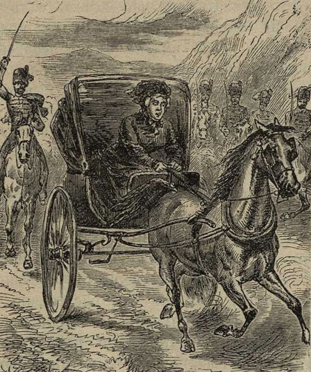 Раз она поехала кататься за город и очутилась на большой дороге. Вдруг вдали показался эскадрон гусар, возвращавшихся с учения; скоро они догнали и перегнали легкую колясочку. Заслышав знакомый стук копыт, старая полковая лошадь насторожила уши, забыла, что она запряжена в оглобли, и поскакала галопом, в одну линию с солдатами. Напрасно кричал офицер, напрасно приказывал экипажу свернуть с дороги: бедная старушка сама была бы очень рада это сделать, она изо всех сил натягивала вожжи, но старая привычка пересилила в лошади послушание, и она, вместе с колясочкой и старушкой, продолжала скакать во главе отряда до тех пор, пока эскадрон не достиг места своего назначения.