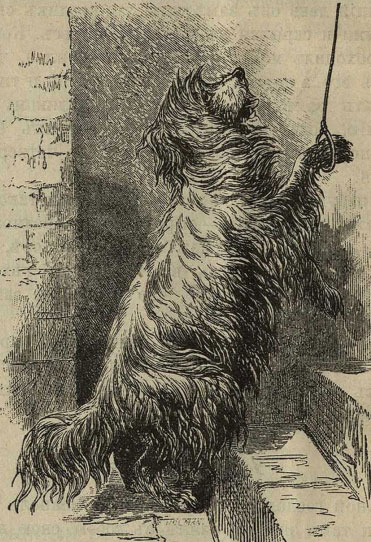 Больной господин отправился в Неаполь, чтобы провести там зиму, и взял с собою свою любимую собаку, которую звали Клауди. Больной любил читать и часто ходить в библиотеку; он брал с собою собаку, но Клауди обыкновенно ссорился с собакой библиотекаря. Наконец Клауди прогнали и не велели пускать в библиотеку. Умная собака пустилась на хитрость. Чтобы позвонить в колокольчик у входных дверей, надо было дернуть за веревку. Собака, очевидно, заметила это. Однажды утром колокольчик громко позвонил; отворили дверь, и в комнату вбежал Клауди. Это повторилось несколько раз; за собакой стали наблюдать и подметили, как она, встав на задние лапы, передними лапами или зубами дергала за ручку звонка, потом быстро отскакивала и ждала, пока отворят двери, чтобы со всех ног броситься в комнату.