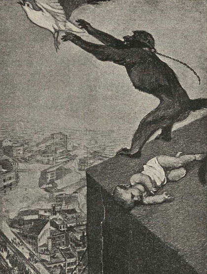 Вдруг на соседней крыше появился человек с ружьем в руке и стал наблюдать за обезьяной. Если она хотя на минуту положит ребенка, он намеревался послать ей пулю в сердце.