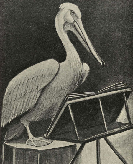 Я знал о природной способности пеликанов раздвигать кончиком клюва камушки на берегу моря, и это меня навело на мысль научить моего Пеликашку перелистывать ноты. Для этого я брал тетрадку, состоявшую из тонких листов фанеры, и помещал ее на пюпитр перед моим учеником.