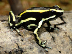 В семействе Древолазы (Dendrobatidae) насчитывается около 120 видов, обитающих в дождевых лесах от Центральной Америки до южной Бразилии. Большинство древолазов имеют небольшие размеры - 1,5-3 см и окрашены в исключительно яркие цвета. Такая предостерегающая окраска этих лягушек в сочетании с мерзким вкусом и жжением, помогает им отпугивать хищников. Древолазы могут быть синими, зелеными, красными, золотыми, в полоску, горошек и т.д.