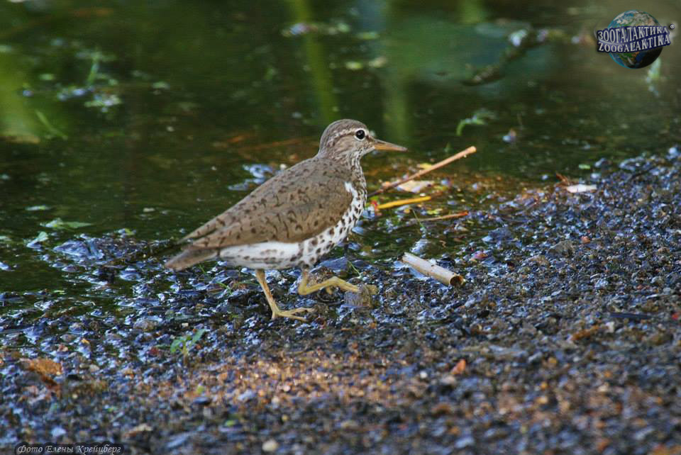 Пятнистый, или американский перевозчик (Tringa (Actitis) macularia) – небольшой куличок, достигающий длины 18-20 см и веса от 25 до 60 г. В брачном наряде его голова, затылок и нижняя часть шеи половозрелых птиц зеленовато-коричневые. Белая полоса над глазом очень тонкая, под ней проходит более тёмная полоса, которая тянется от основания клюва через глаза до пятен уха. Клюв ярко-оранжевый с чёрной вершиной. Горло, верх шеи и нижняя сторона тела белые с выделяющимися большими коричневыми пятнами. Подхвостье белое. В зимнем наряде клюв тёмно-коричневый, на нижней части тела отсутствуют пятна, лишь по бокам груди имеются бурые пятна. Верхняя сторона тела однотонно-коричневая. Молодые птицы похожи на взрослых птиц в зимнем оперении.
