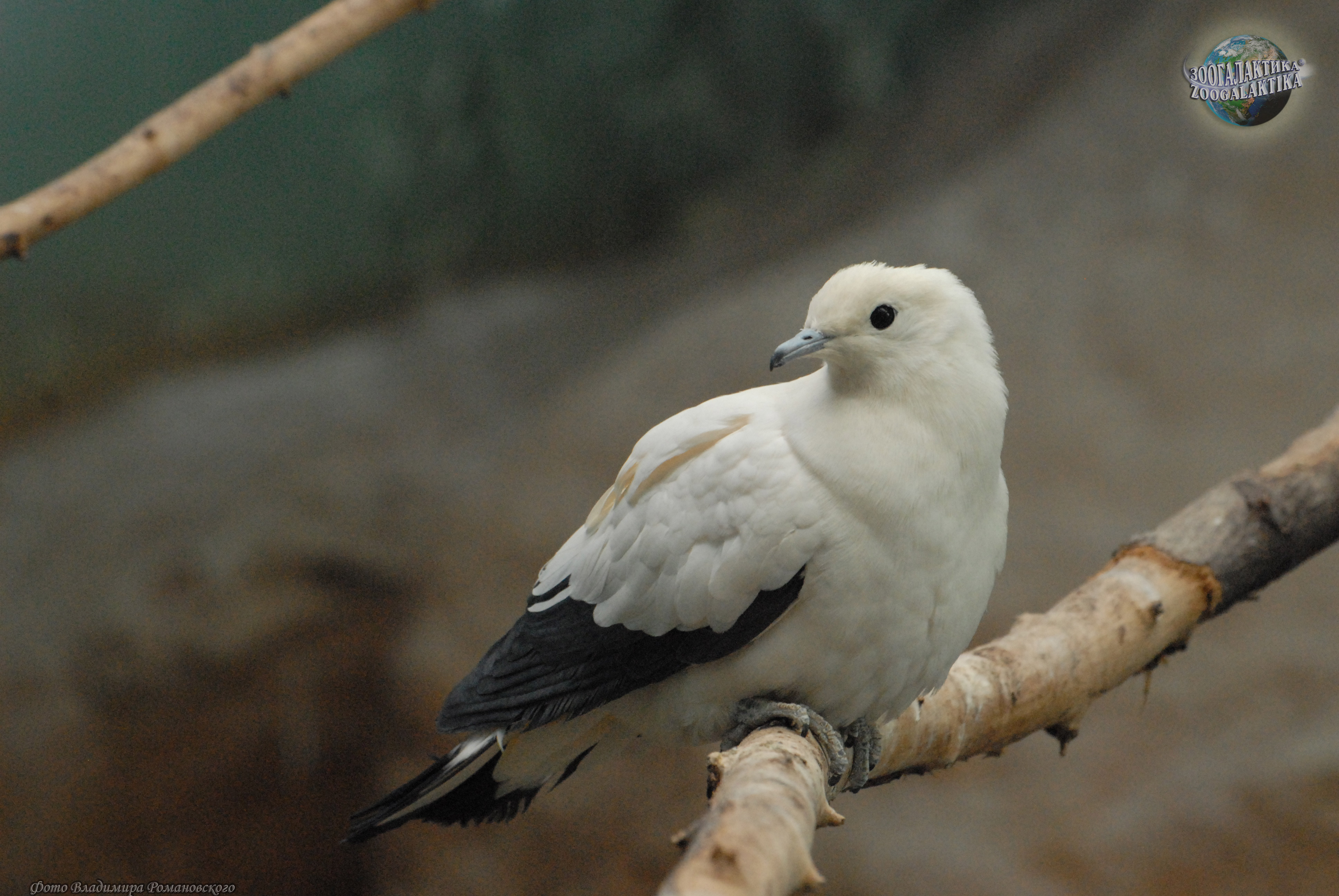 Двуцветный фруктовый голубь (Ducula bicolor) обитает в тропических лесах, мангровых и кустарниковых зарослях и на плантациях кокосовых пальм на маленьких островах в Индийском океане от острова Никобар до Новой Гвинеи и в северной части Австралии. Это довольно крупный голубь, длиной 37-44 см с размахом крыльев до 45 см. В его окраске действительно присутствует только два цвета — белый и черный.