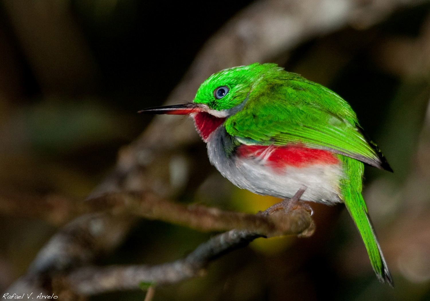 У узкоклювого тоди (Todus angustirostris) верхняя сторона тела зелёная, под крыльями и под клювом красные пятна и белое брюшко. У него более узкий клюв, чем у остальных видов, за что он и получил своё название. Длина крыла у этого тоди 4,5 см, общая длина около 10 см.