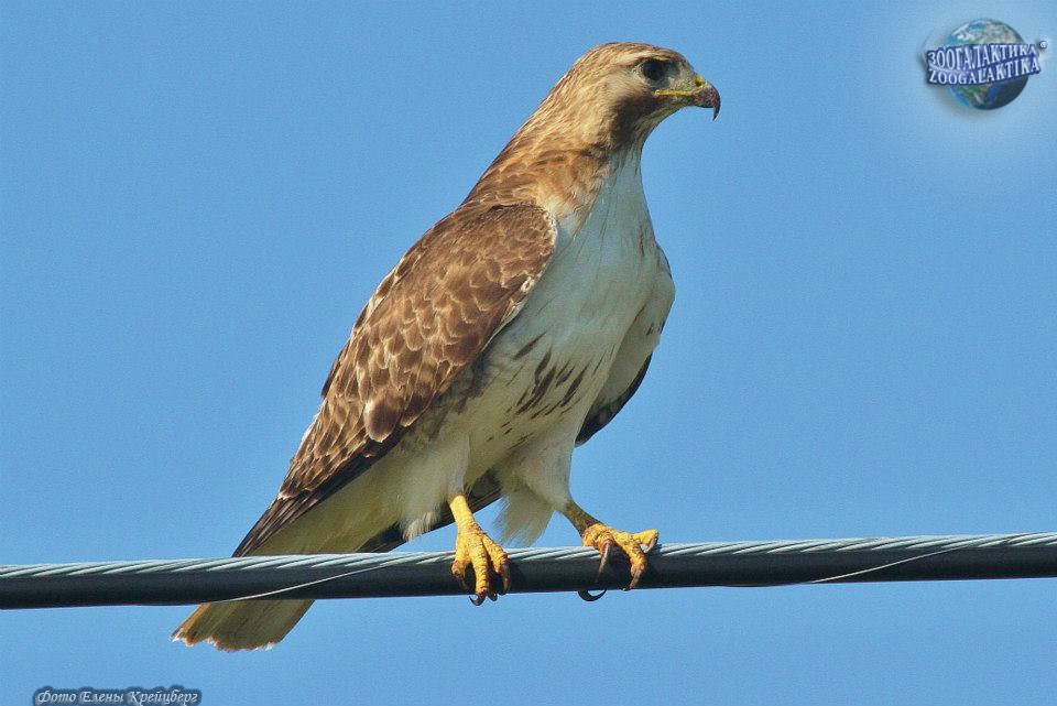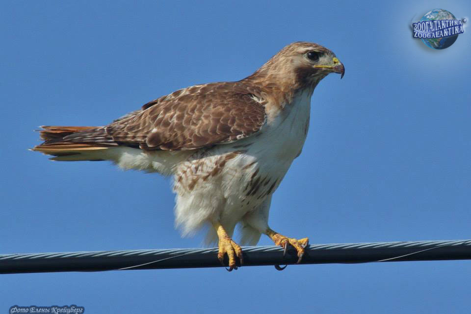 Краснохвостый сарыч (Buteo jamaicensis) достигает длины от 45 до 58 см, при размахе крыльев от 107 до 141 см (причем самцы меньше самок). Крылья у сарыча широкие, закруглённые, клюв значительно сильнее чем у мохноногого канюка. Окраска оперения этого хищника очень изменчива. В ареале различают 14 подвидов, которые частично имеют различные цветовые морфы.