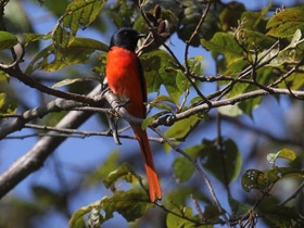 К семейству Личинкоедовые (Campephagidae) относится около 70 видов (9 родов) птиц размерами от воробья до вороны или голубя. У них небольшой, широкий клюв, окружённый жёсткими щетинками, надклювье которого на вершине загнуто в виде крючка, с небольшим предвершинным зубцом. Ноги у личинкоедов короткие и слабые, крылья острые. Перья спины и огузки у большинства видов имеют жёсткий, уплощённый стержень и мягкое и тонкое окончание, что позволяет птицам поднимать их дыбом в случае приближения опасности. Хвост у этих птиц длинный, ступенчатый. Личинкоеды населяют тропические и субтропические страны восточного полушария от Западной Африки до Меланезии и Австралии, гнездятся также и на Мадагаскаре.