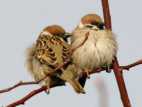 Воробьиные – это мелкие и средние по величине птицы плотного сложения с мощным, конусовидным клювом, приспособленным для шелушения и дробления семян. Длина тела разных представителей колеблется от 11 до 18 см, вес до 40 г. Крылья у них острые, хвост средней длины, обычно закруглён или обрезан прямо, реже вырезан вилочкой. Окраска у воробьиных менее пёстрая, чем у ткачиков и астрильдов, в расцветке сочетаются серые, буроватые, белые, чёрные, каштановые или рыжие тона.