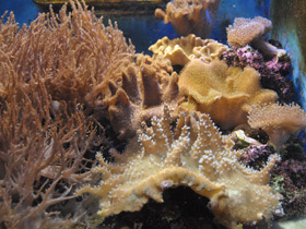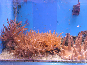 Большинство мягких кораллов либо «отпочковывают» маленькие отростки от основания, либо буквально «распадаются». Кусочки кожистой тарелки саркофитона быстро осваиваются на новом месте и вырастают в точное подобие материнского коралла. В аквариумах можно разводить мягкие кораллы, разрезая их на части бритвой или очень острым скальпелем. Этот способ хорошо применим и к кораллам Sinularia, у которых происходит естественное деление. Можно поместить «новый» коралл в удобную ямку, отверстие в камне или просверлить кусочек туфа. Коралл быстро устроится там, и будет нормально расти. Материнский коралл также оправится через несколько недель.