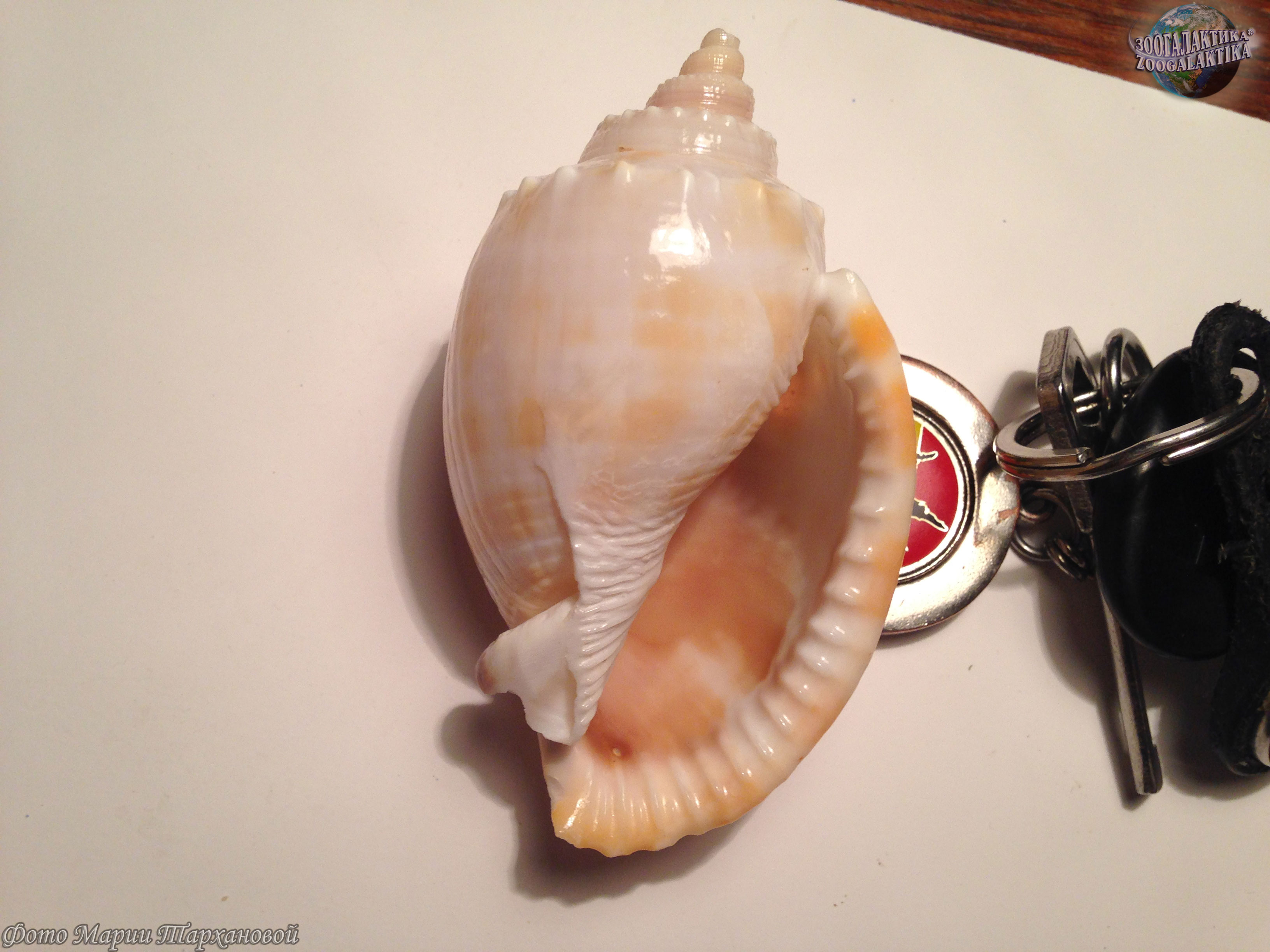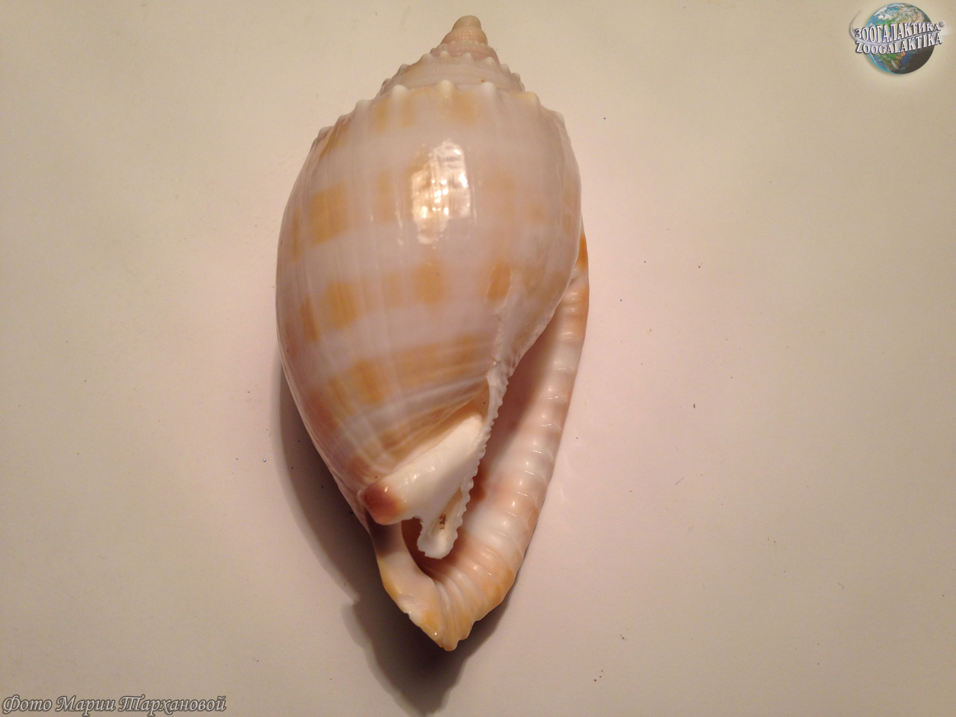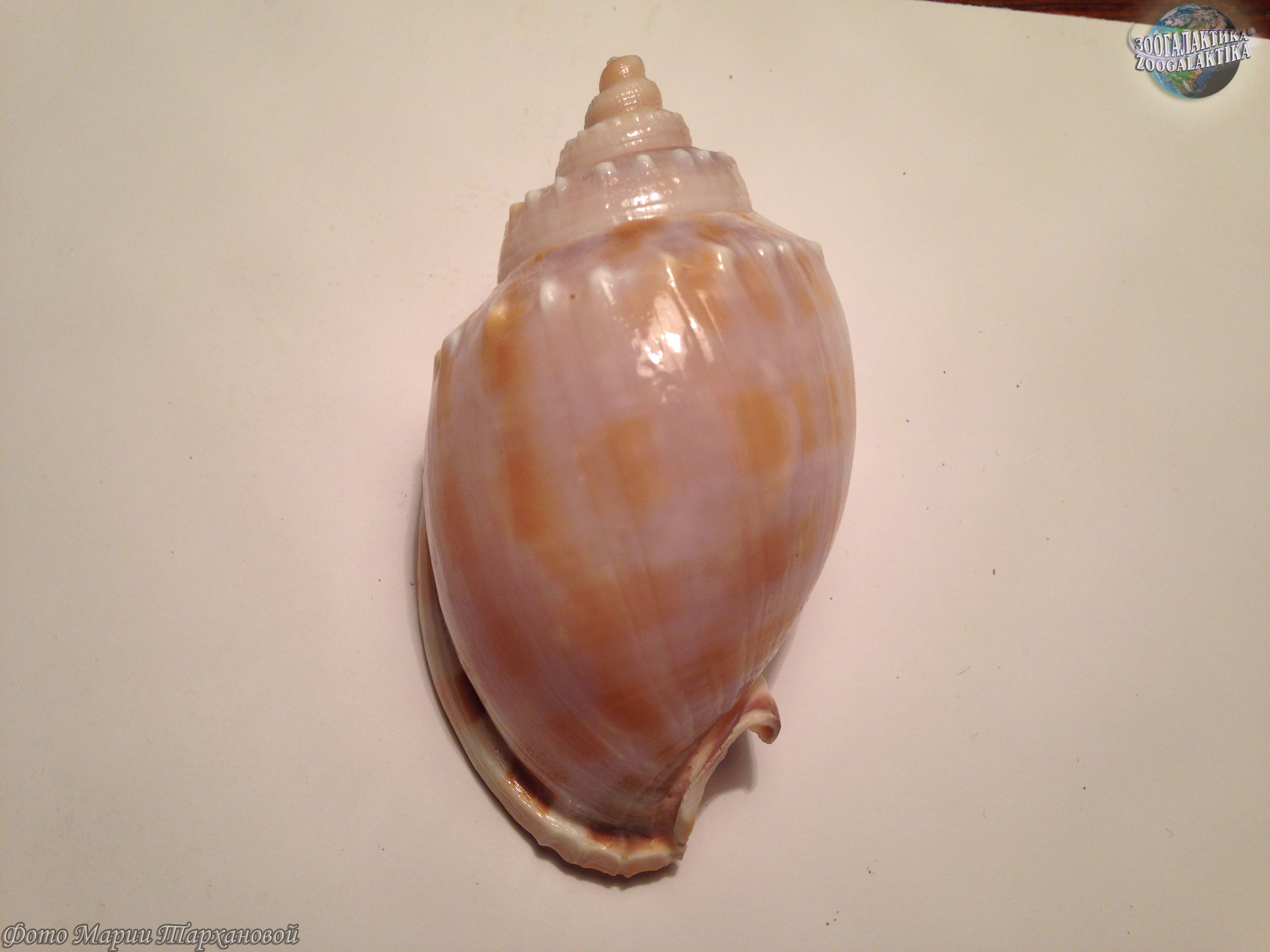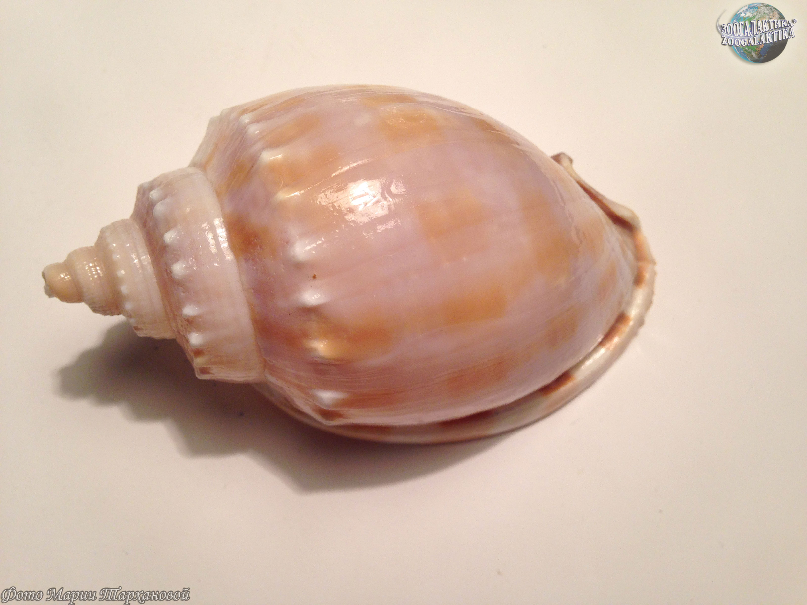Красивая океаническая раковина с гладкой глянцевой поверхностью. Цвет ракушки бежевый с яркими рыже-коричневыми пятнами. На обороте есть выпуклые точечки. На внешней губе, рядом с устьем, присутствуют зубчики, она закручена наружу. Длина раковины колеблется от 6 до 14 см.