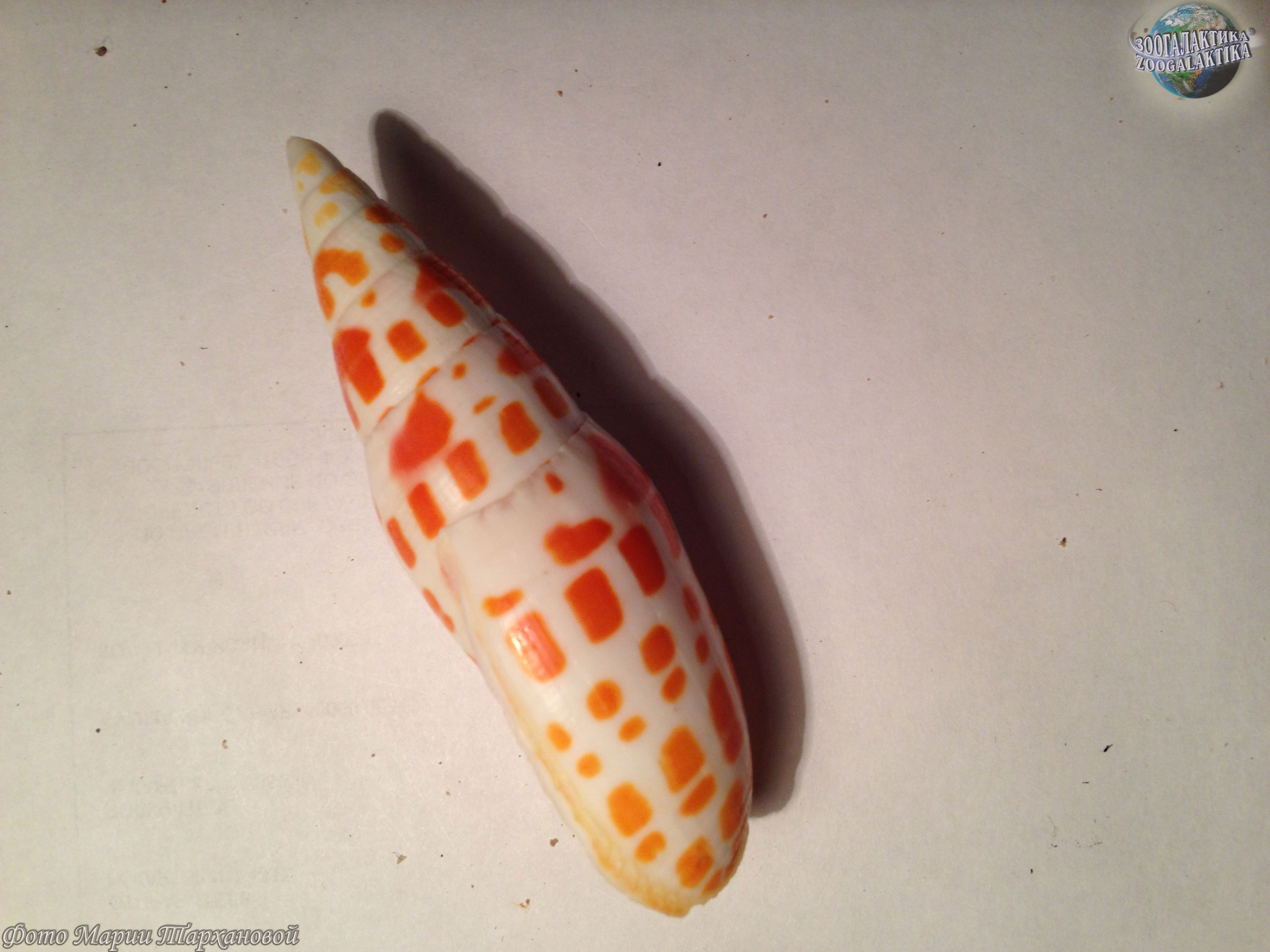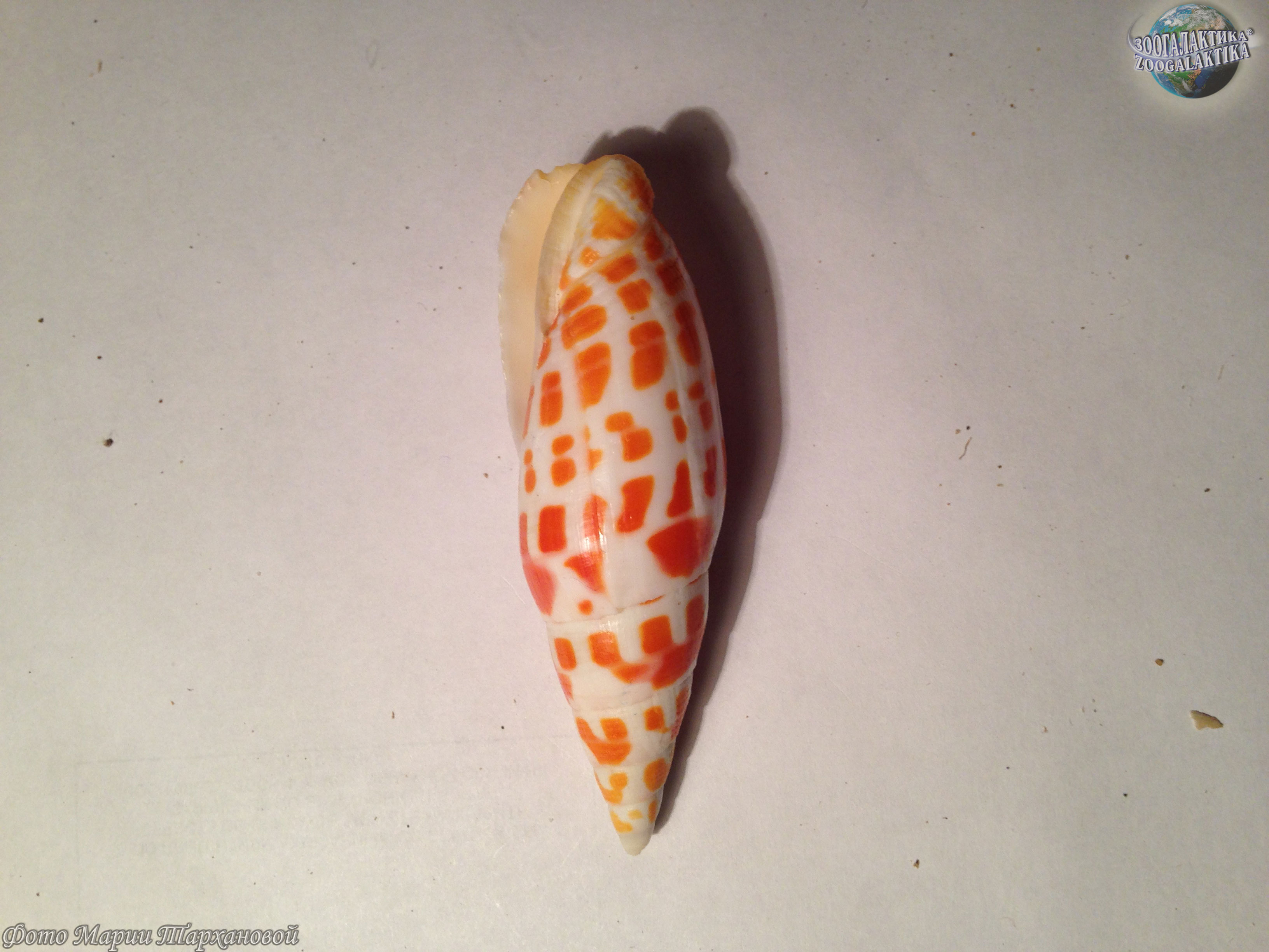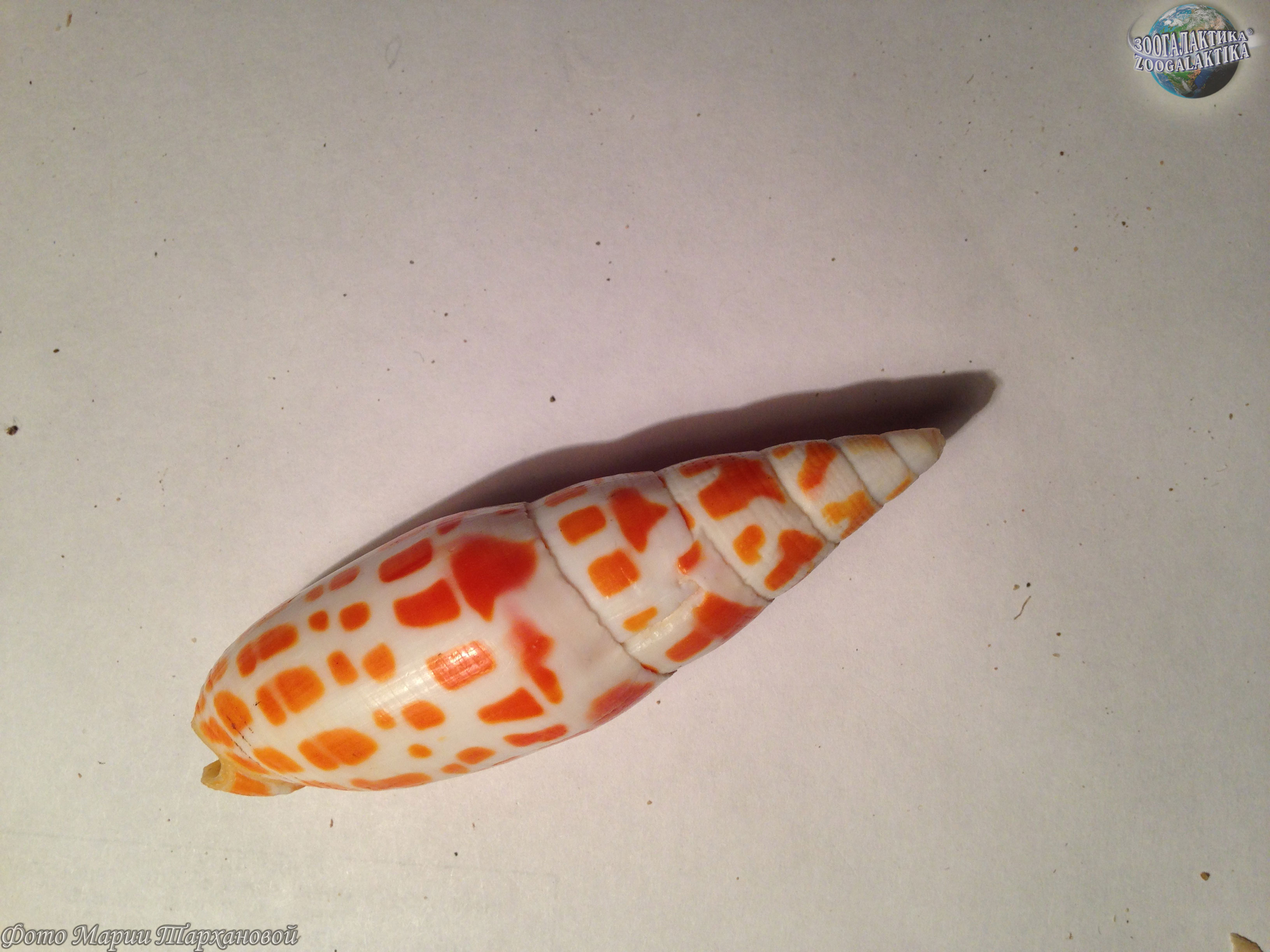 Максимальная длина раковины для этого вида составляет 18 см, но обычно не больше 14 см. Раковина удлинённая, с высоким завитком. Поверхность раковины гладкая с несколькими слабыми, спиральными углублениями ближе к концу. Цвет белый со спиральными рядами крупных оранжевых или красных пятен.