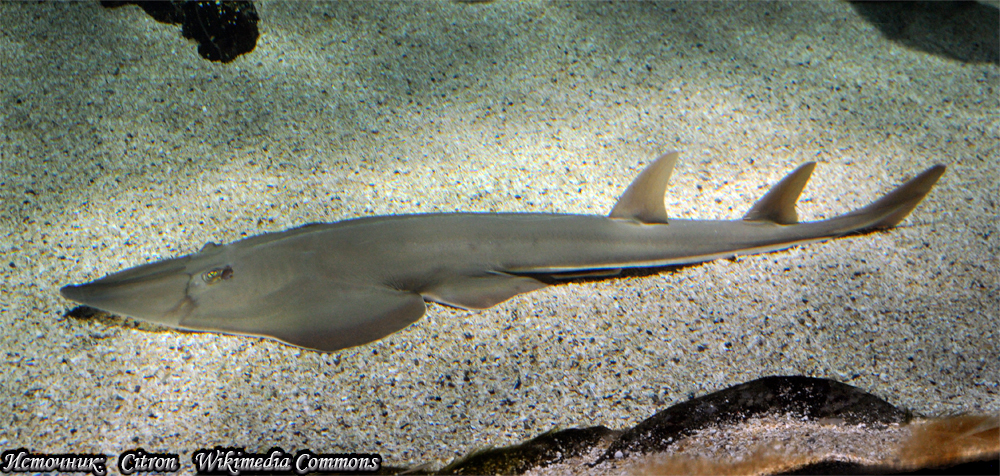 Средиземноморский гитарный скат Rhinobatos rhinobatos 15397 Средиземноморский гитарный скат (Rhinobatos rhinobatos) занесен в Красную книгу МСОП в статусе "вымирающий вид"