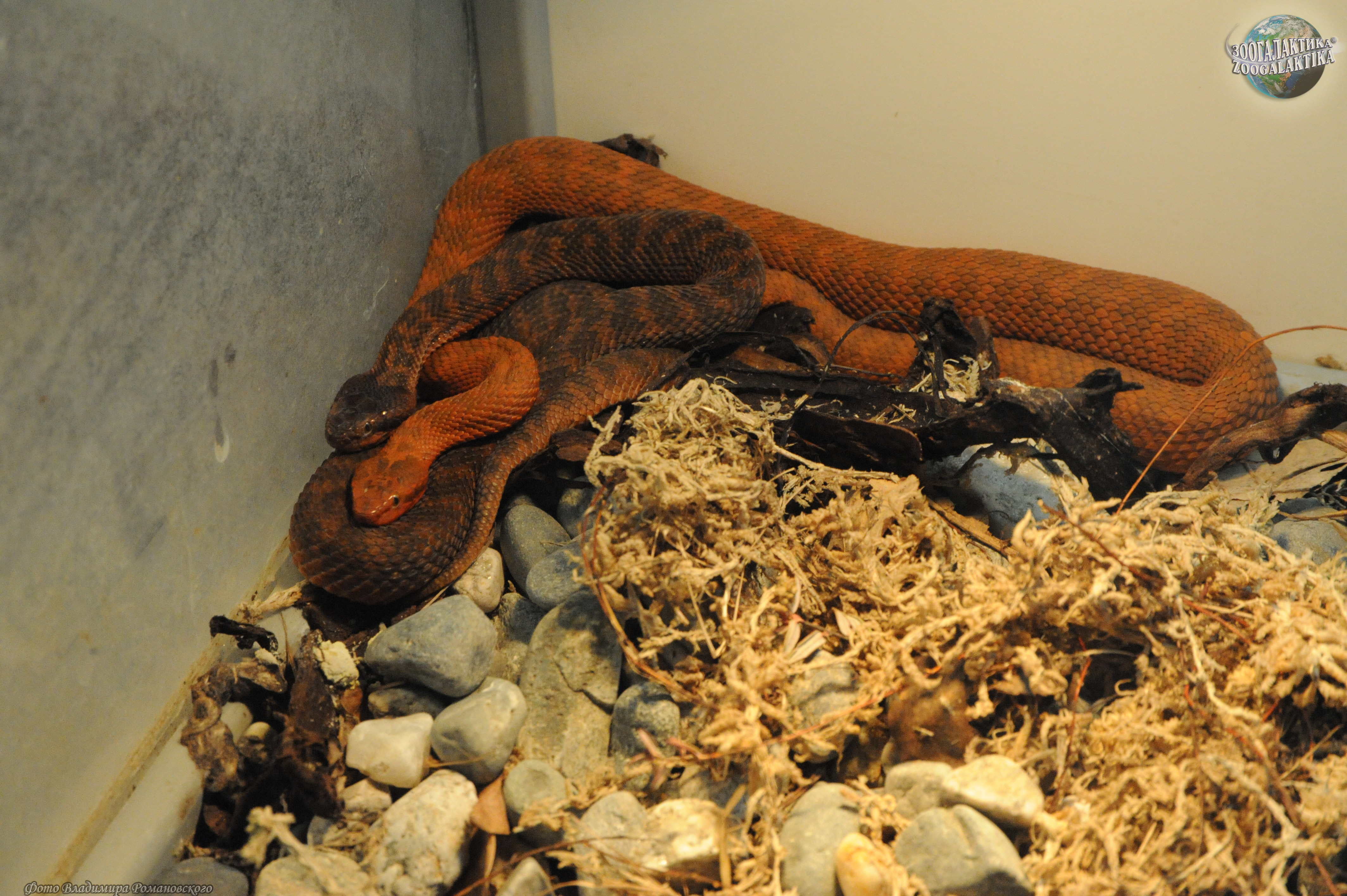 Обыкновенный щитомордник (Agkistrodon halys) - сравнительно небольшая змея длиной до 70 см. На переднем конце головы щитомордника расположены лицевые ямки, которые разделены внутри чувствительной мембраной. Второй выход из ямки расположен около глаза. Благодаря этим ямкам щитомордник способен различать колебания температуры до 0,2'С. Окраска туловища у этой змеи серая или коричневая, на спине вдоль хребта расположены широкие темные поперечные пятна, края которых темнее, чем середина. Сверху на голове имеется четкий пятнистый рисунок, на боках тела - продольный ряд более мелких темных пятен.